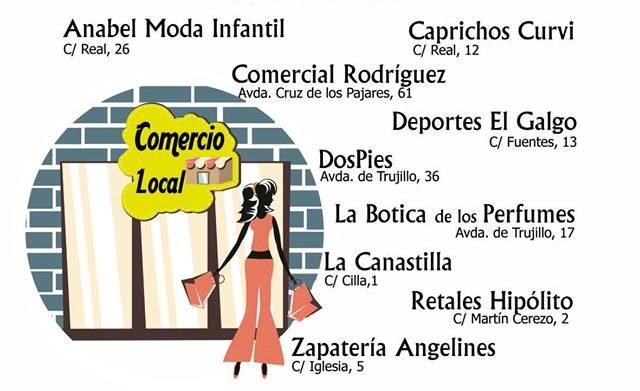 La Canastilla del Bebé, Anabel Moda Infantil y Juvenil, Caprichos Curvi, Dospies Zapaterías, Deportes El GALGO, Retales Hipólito y Cándido, La Botica de los Perfumes Miajadas, Maquinaria Agrícola Comercial Rodríguez y Zapatería Angelines estarán la puerta de sus respectivas tiendas de 9:30 a 13:30 para ofrecer a los clientes sus artículos a pie de calle.