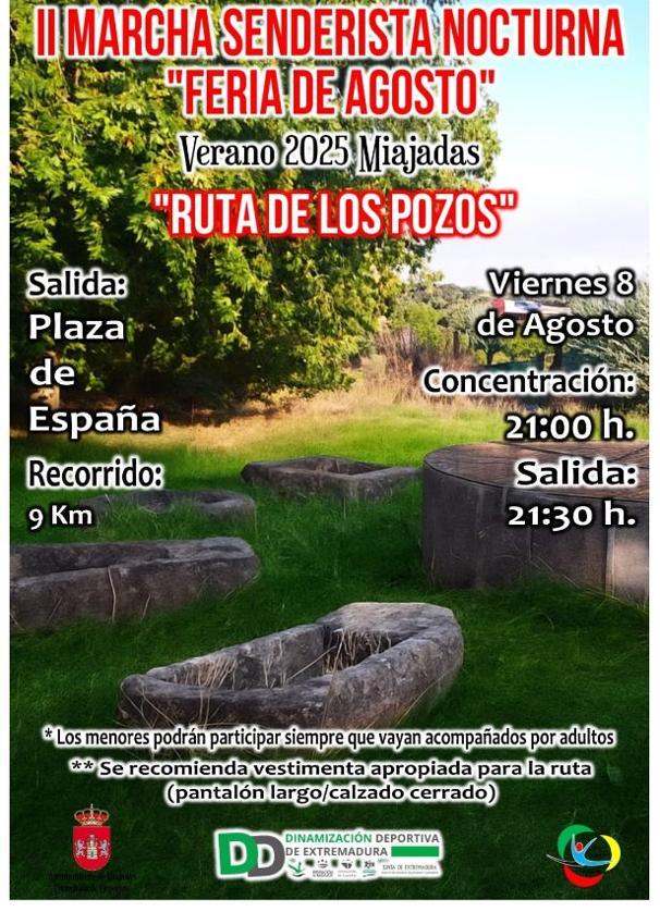 El próximo 8 de agosto, enmarcada dentro de los actos organizados con motivo de la celebración de la Feria y Fiestas de Miajadas 2025, se celebrará la segunda edición de la Marcha Senderista Nocturna 'Feria de Agosto'.