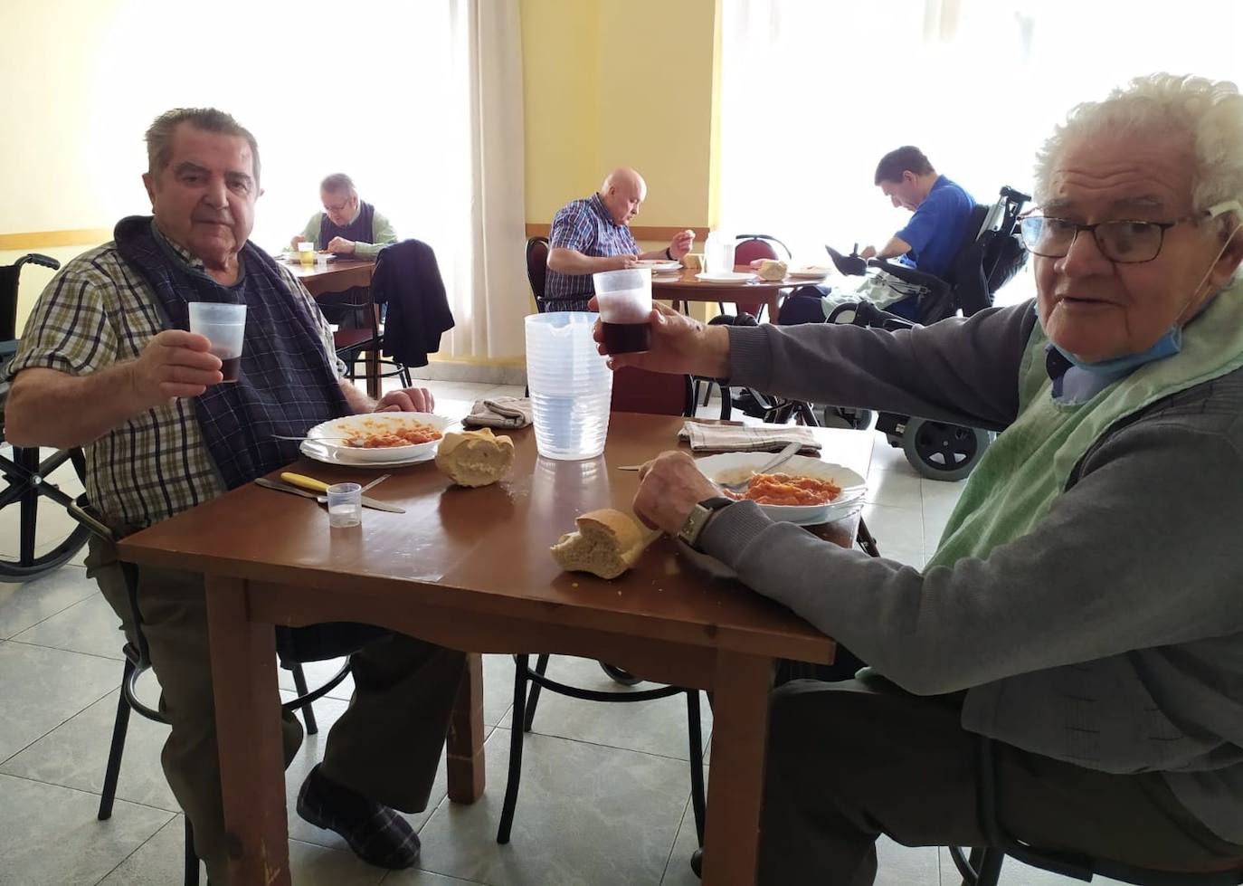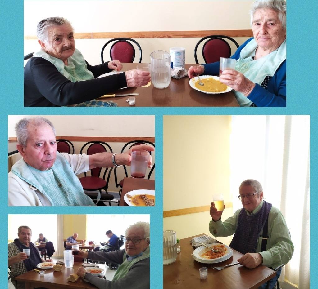 A mediodía día degustaron una comida especial acompañada por un vasito de vino, y por la tarde tuvieron una merienda diferente con helado incluido.