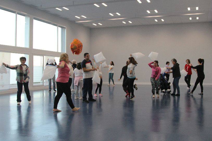 Unas 20 personas participaron en una actividad interactiva, con carácter escénico y de danza, que estuvo dirigida y diseñada por la bailarina, docente y creadora Sara García-Guisado. Con más de 25 años de experiencia en el sector de las artes del movimiento, es además generadora de contenidos relacionados con danza, comunidad y creación de públicos para las artes vivas en Extremadura, Cataluña y Portugal.