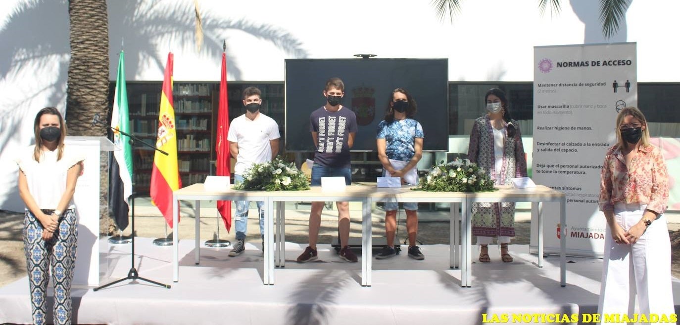 El evento, celebrado bajo estrictas medidas de seguridad en el patio interior del palacio, fue presidido por Gloria Esteban, concejala de Educación y Cultura, acompañada por Berna Casillas en representación del Centro de Adultos; Mª José Cañamero, directora de Educación Secundaria del Colegio Sagrado Corazón de Jesús y María Inmaculada; y Loli Castuera, jefa de estudios del I.E.S. Gonzalo Torrente Ballester.