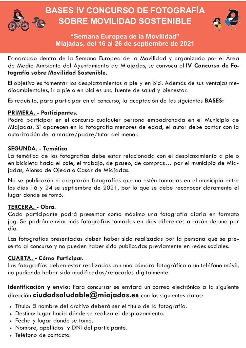 La iniciativa pretende fomentar el desplazamiento por la localidad andando o en bicicleta, ya sea al colegio, al trabajo, de compras, de paseo,…Los miajadeños pueden participar en el 'IV Concurso de fotografía sobre Movilidad sostenible'.
