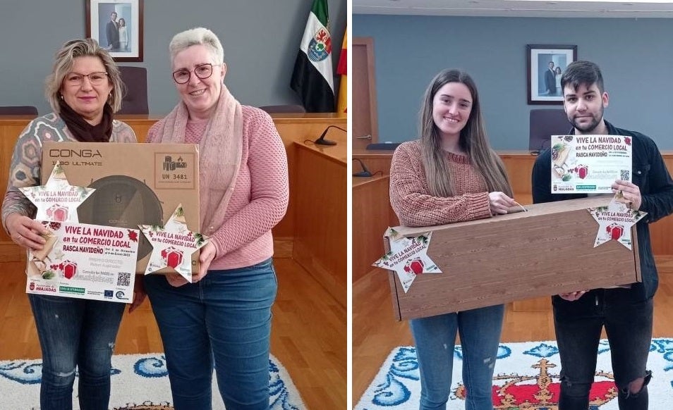 Miguel Ángel Hoyas Maldonado ha sido afortunado con un robot aspirador por sus compras navideñas en Piensos Corrales, mientras que Jorge Vaquero Sauceda ganó una cesta de productos extremeños por realizar sus compras navideñas en Deportes Galgo.