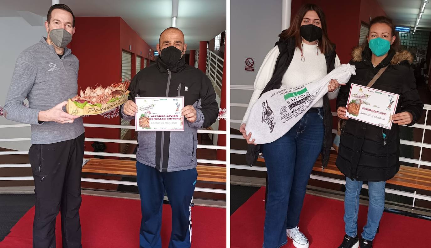 Natividad Pacheco Castro, ganadora del jamón reserva, portaba un boleto de la Mercería Lola y un familiar se encargó de recoger el premio en su representación. Por otro lado, el barco de marisco correspondió a Alfonso Javier González Cintero, portador de un boleto de Antonio Caro Carnicería.