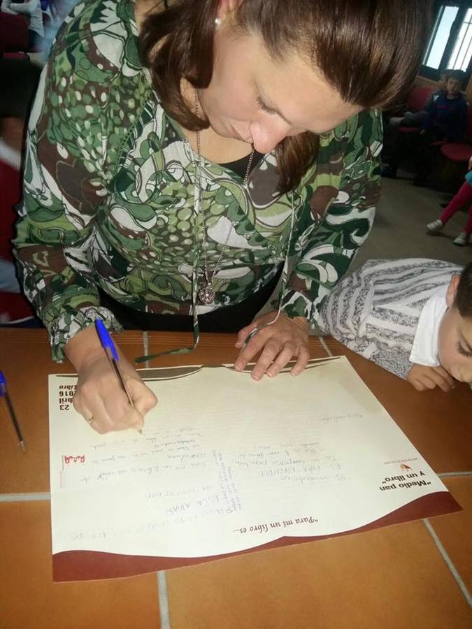 En la actividad, los asistentes pudieron leer el libro Medio pan y un libro. Breve antología poética de autores cacereños. Además, desde los más pequeños a los más mayores se lanzaron a escribir en el panel que rezaba la frase inconclusa: Para mí un libro es.... A cambio la biblioteca del municipio recibió para sus fondos bibliográficos un ejemplar del libro.