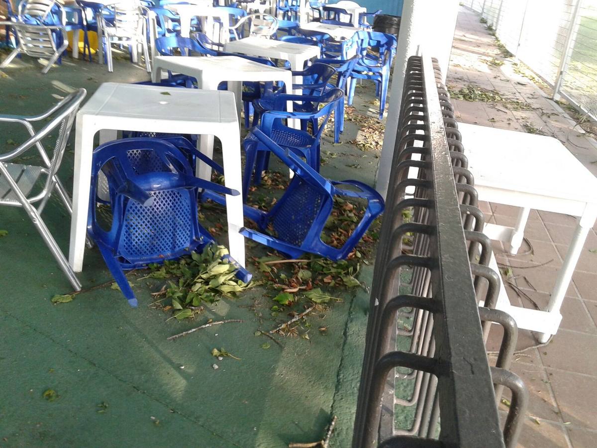 Por estas fuertes inclemencias meteorológicas y por los estragos producidos por el viento, el Ayuntamiento se ha visto obligado a cerrar las instalaciones de la piscina municipal de verano hoy y hasta nueva orden debido a motivos de seguridad y tareas de limpieza. El cierre ha provocado el traslado del campamento municipal urbano desde estas instalaciones a las pistas cubiertas del parque La Laguna Nueva.