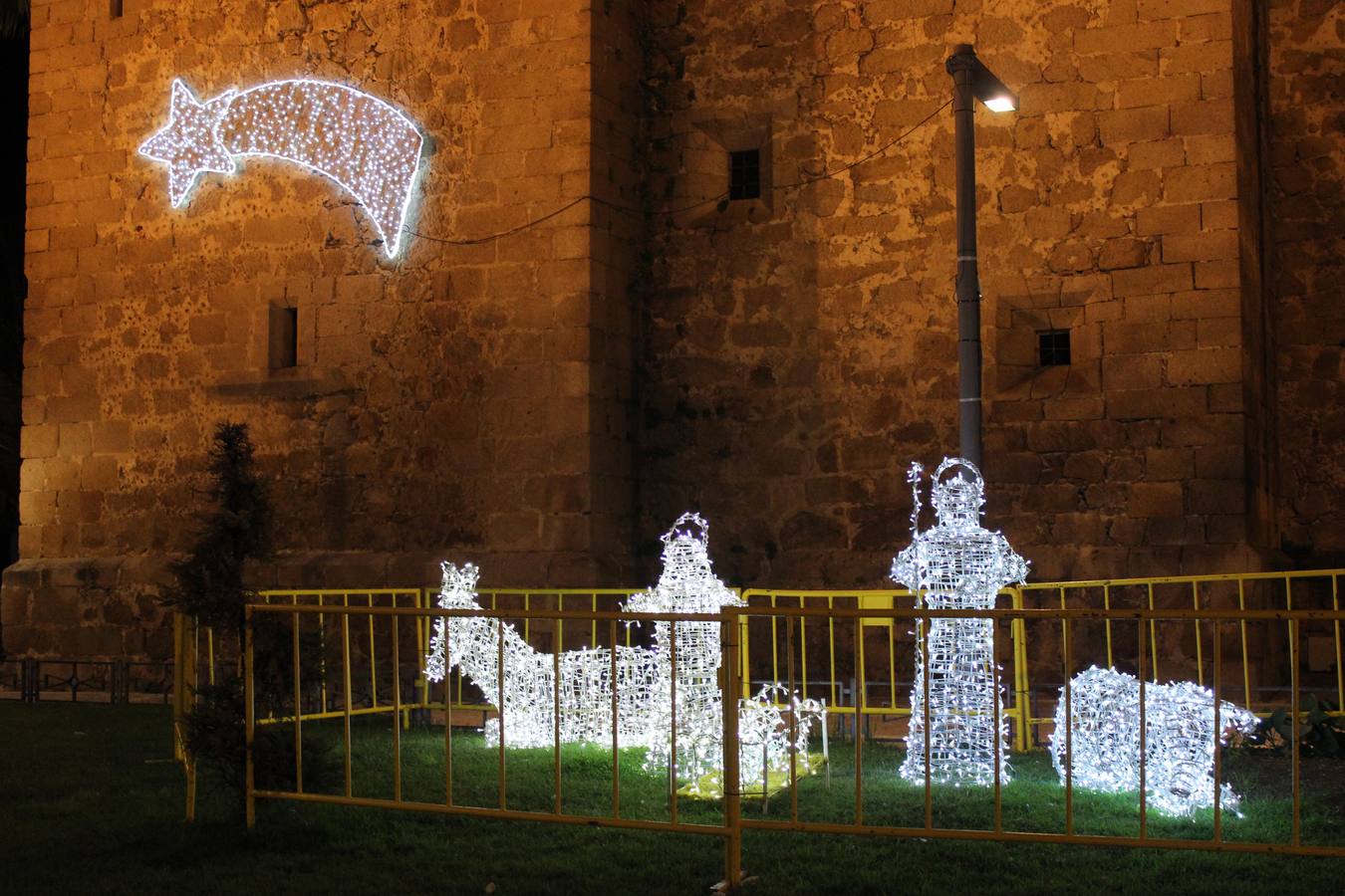 Se mantienen el árbol de Navidad entre la Avenida de Trujillo y la Calle Fuente, y el portal de belén en la iglesia de Santiago Apóstol