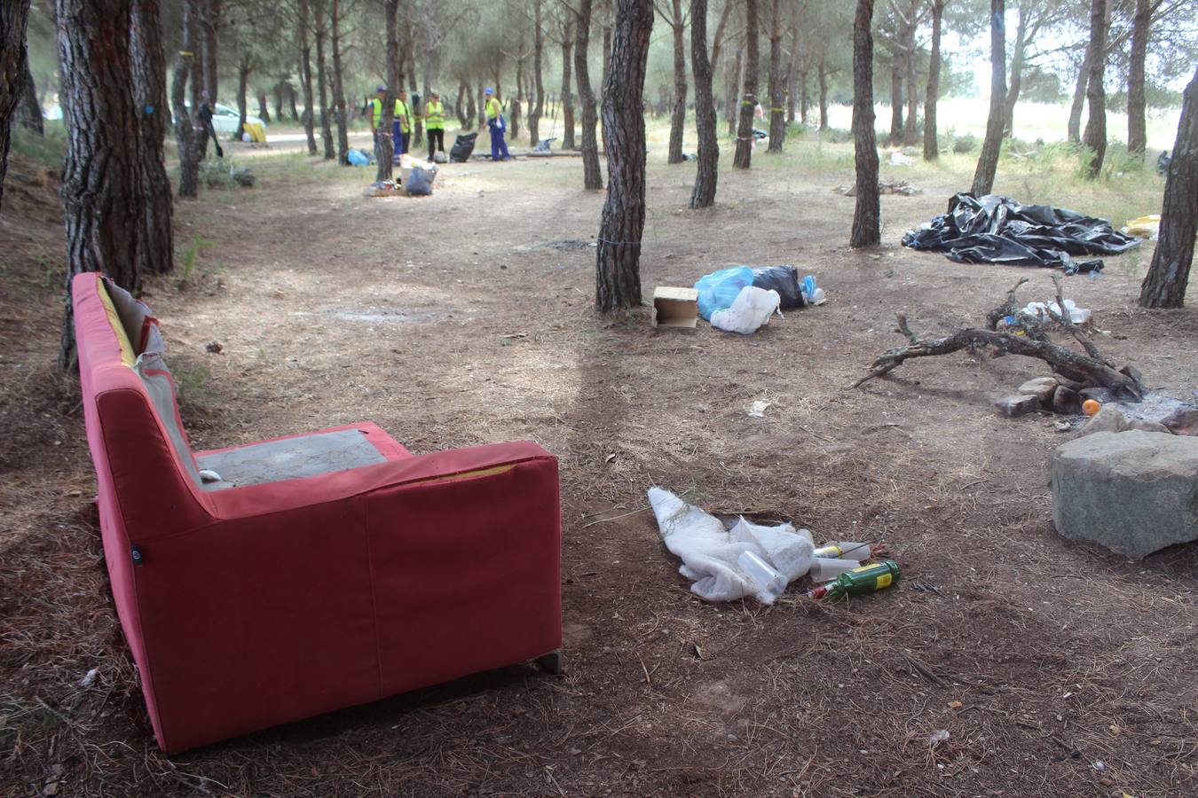 Bolsas y bolsas de basura, latas de refrescos por el suelo, cenizas de las hogueras, toldos todavía colocados entre árboles e incluso hasta un sofá. Es lo que se han podido encontrar los trabajadores del Ayuntamiento en su jornada de trabajo esta mañana. La mayoría de ellos han mostrado su preocupación por el estado de la zona en conversación con este diario.