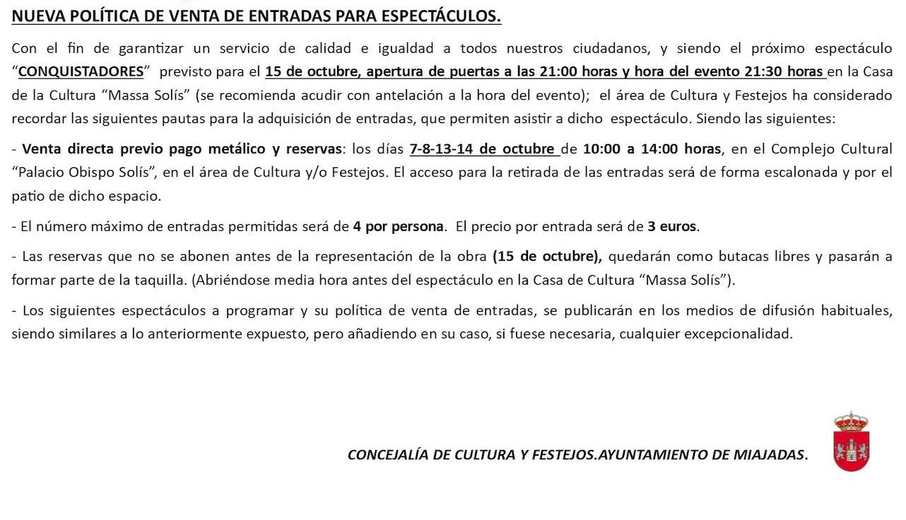 El nacimiento del imperio español a través de recursos visuales y divertidos donde el espectador será el protagonista de acontecimientos históricosEnmarcada en la programación teatral de otoño, la comedia 'Conquistadores' llega a Miajadas el próximo 15 de octubre.