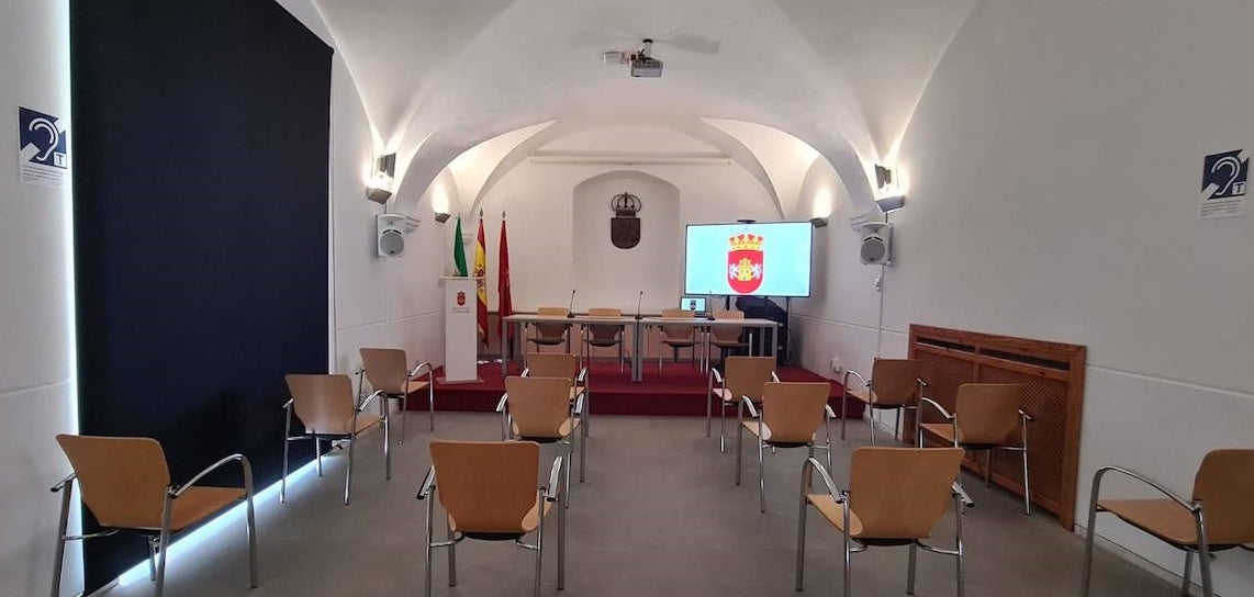 Tras instalar bucles magnéticos y de sonorización en la Sala de Conferencias, se ha adquirido una pantalla que ofrece cuatro veces más resolución y permite un ángulo de visión más amplio y multidimensionalEl Palacio Obispo Solís está siendo acondicionado para personas con diferentes capacidades sensoriales.
