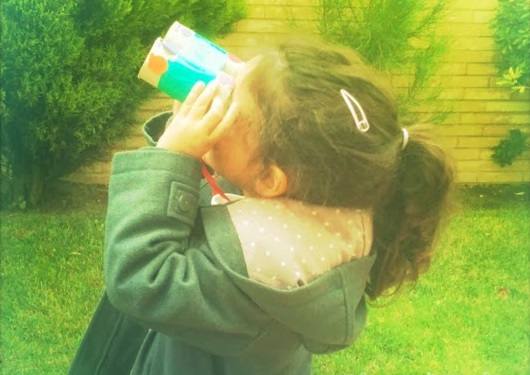 Los pequeños fabrican sus propios prismáticos para observar el paisaje cuando salen a pasear