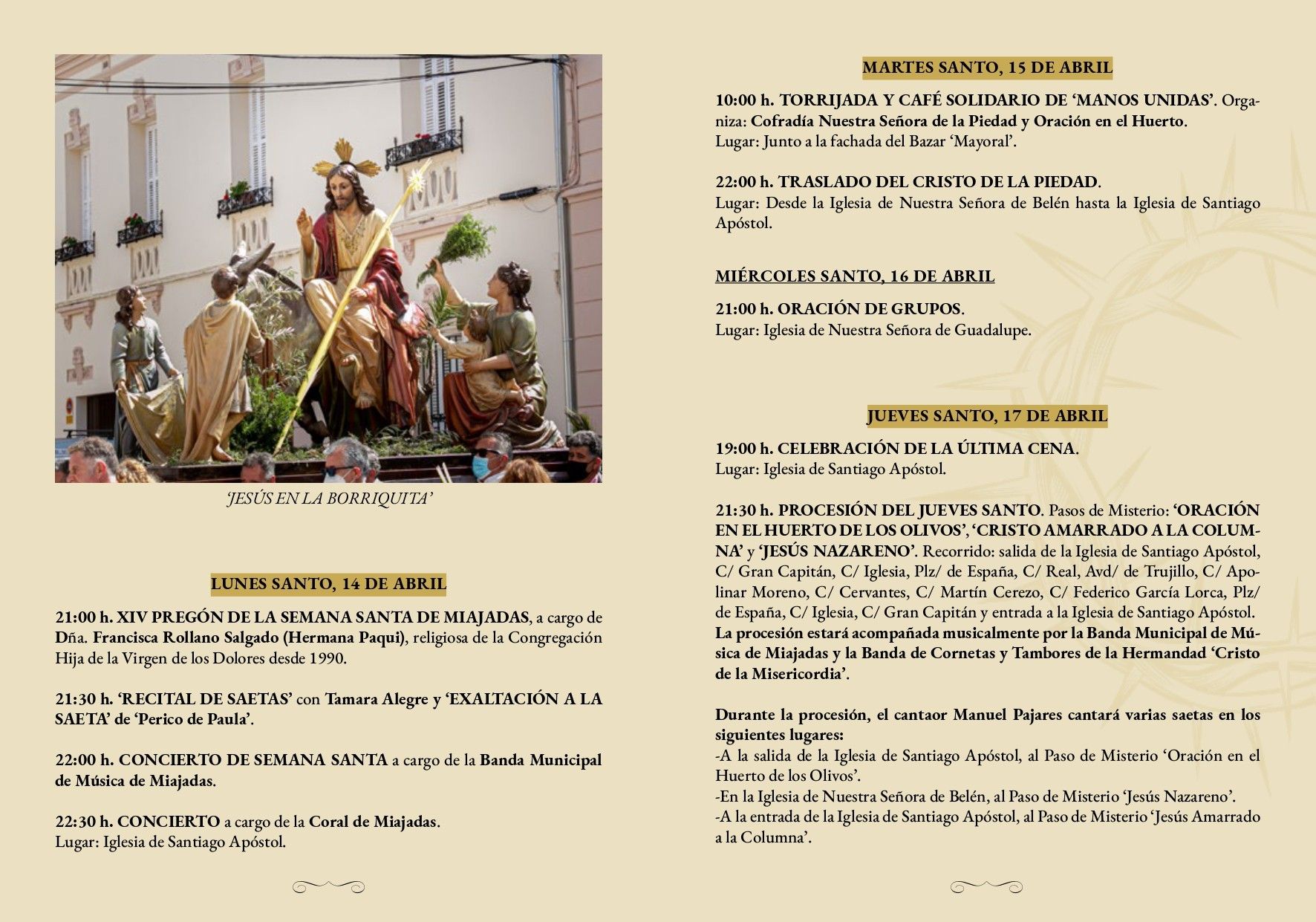 Programa de procesiones y cultos de la Semana Santa de Miajadas 2025