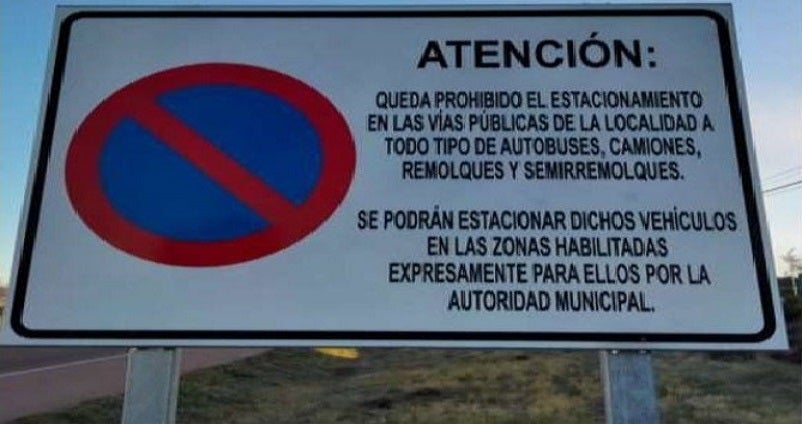 Prohibido estacionar en la vía pública autobuses, camiones, remolques y semirremolques