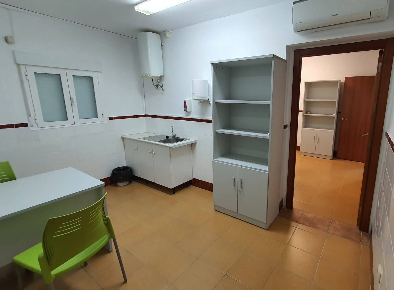 El aseo ha cambiado su ubicación con el fin de cumplir la accesibilidad, haciendo posible además la entrada desde el exterior a la sala de reuniones a través de una rampa. El nuevo aseo está dotado de lavabo e inodoro especial para personas discapacitadas, y además cuenta con una ventana para conseguir una buena ventilación e iluminación.
