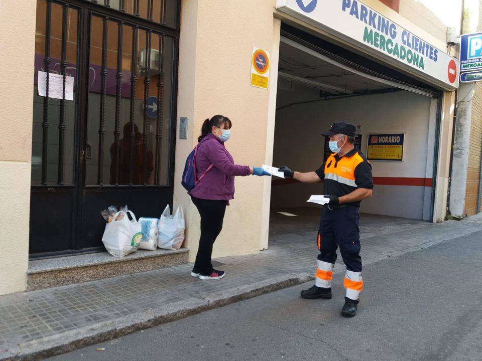 Reparto de dípticos con información de los nuevos horarios de paseo y deporte