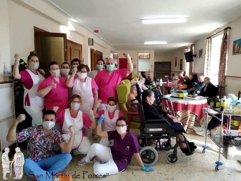 Esta semana el centro ha celebrado el Día de la Diversión en el trabajo, una fiesta que ya se ha convertido en una de sus tradiciones. A pesar de las circunstancias especiales, los trabajadores de San Martín de Porres quisieron demostrar que no hay que perder nunca la sonrisa, por lo que decidieron pintarse una encima de sus mascarillas para que sus mayores pudieran verlas.