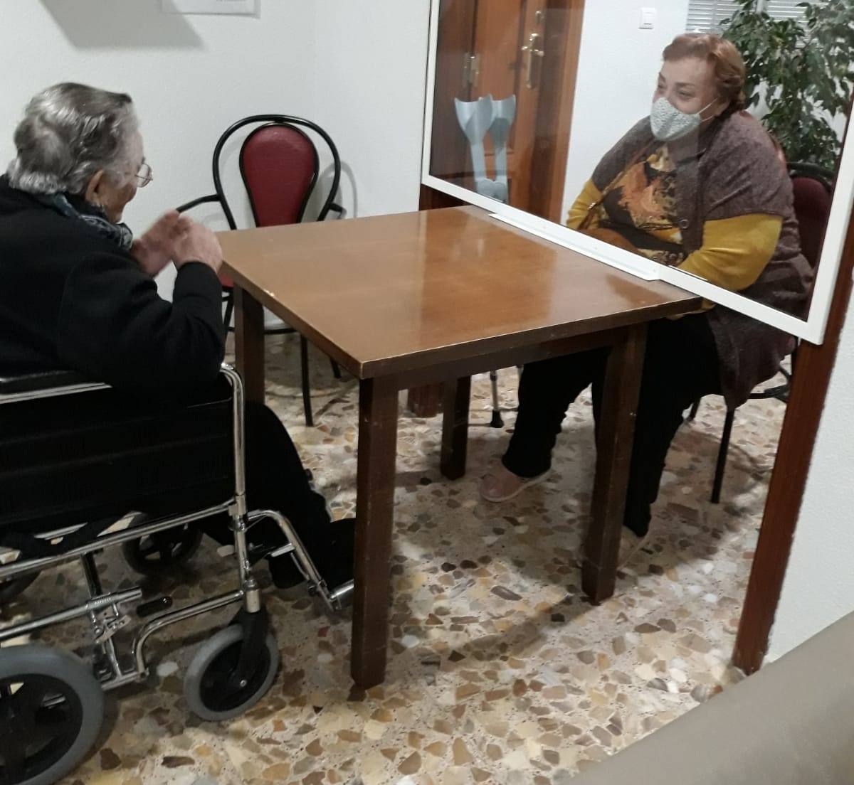 De forma diferente, ya que les separaba ... una mampara que la Dirección del centro ha encargado expresamente para esta finalidad, los mayores pueden volver a ver de cerca a sus seres queridos, mantener una conversación y sentir su cariño.