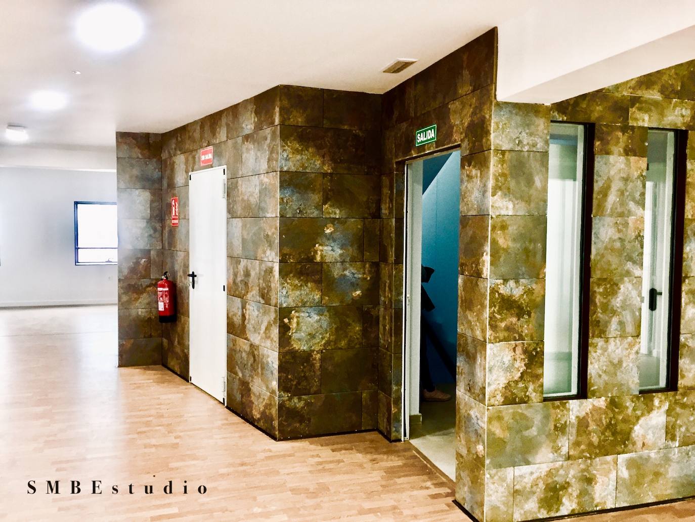 En el exterior, que se llevó gran parte del presupuesto, se decidió por una fachada ventilada, utilizando lana de roca y todos los huecos existentes para conseguir la máxima eficiencia energética, como explica Santiago: «Se intentó hacer los menos cambios posibles, siempre convirtiéndolo en un cerramiento nuevo y eficiente energéticamente, y darle un componente estético acorde en cierta manera con los tiempos de ahora, más moderno. Para darle un poco de continuidad a la 'piel' de la fachada, instalamos lamas en los dos patios semi interiores para cerrarlos y darle la continuidad al edificio y utilizar uno de ellos, al menos así se plasmó en el proyecto inicial, como una sala al aire libre para la futura biblioteca, donde poder fumar o hablar un poquito más alto».