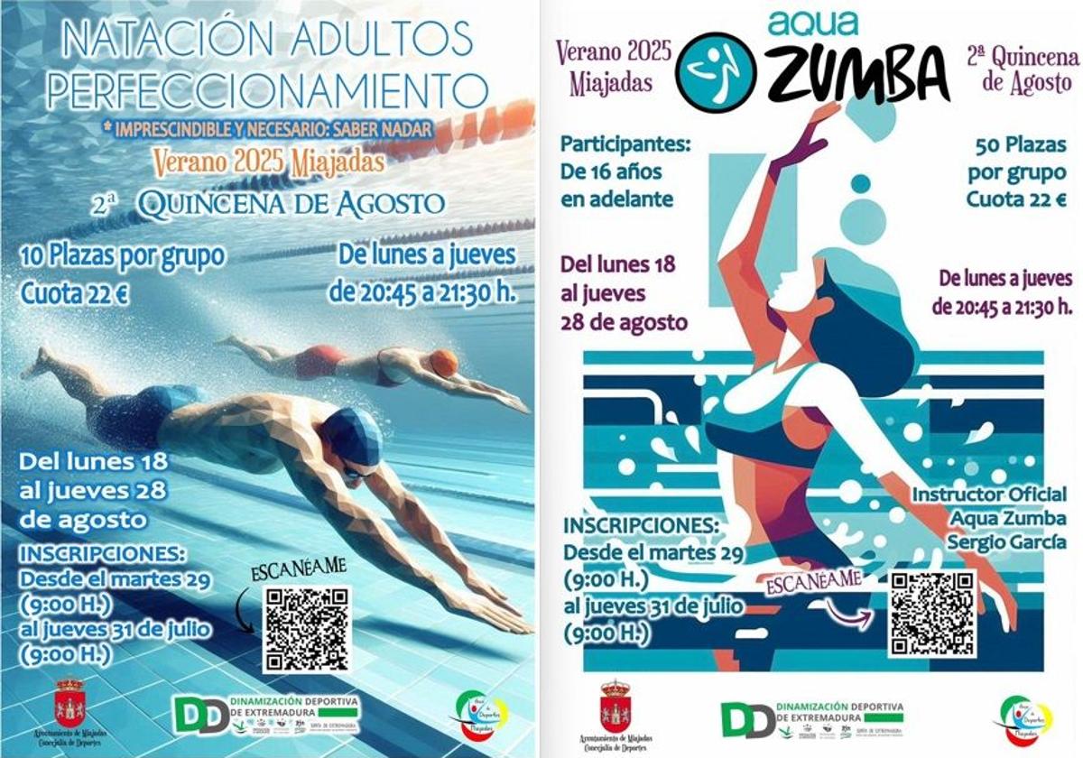 Finalizado el mes de julio, como se ha anunciado desde el Ayuntamiento de Miajadas a través de su Concejalía de Deportes y con la colaboración del programa de Diamización Deportiva de Extremadura, las actividades continuarán durante el mes de agosto, concretamente durante la segunda quincena, con los cursos de Natación para adultos (perfeccionamiento) y Agua Zumba.