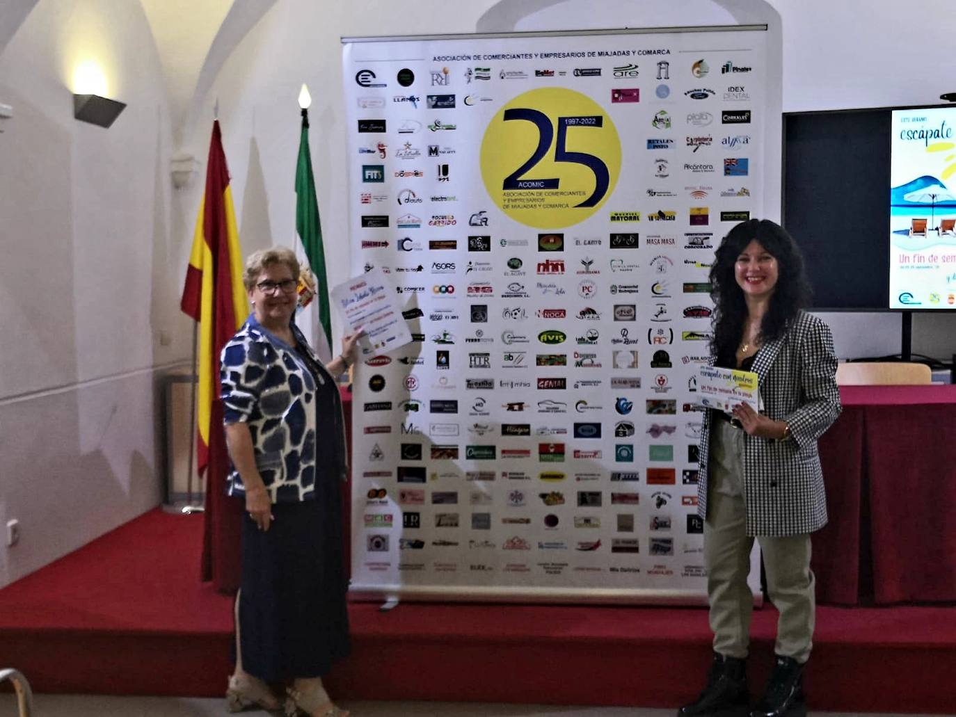 En el acto de entrega han estado presentes Marisa Parras, dueña de Vitalud, empresa que entregó la papeleta que finalmente resultaría premiada; María Corona Fernández, presidenta de Acomic; Gloria Esteban, concejala de cultura; y representantes de las empresas colaboradoras: Carpintería Metálica Espacio Loro y la Agrupación de Agricultores San Marcos.
