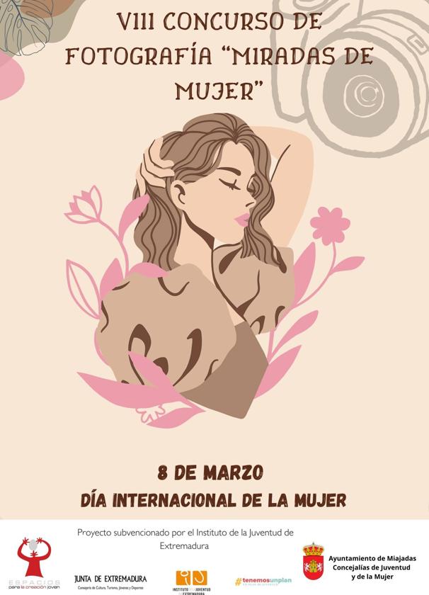 Con motivo de la conmemoración del Día Internacional de la Mujer, que se celebrará, como cada año, el 8 de marzo, se ha organizado el VIII Concurso de fotografía 'Miradas de Mujer', organizado por el Espacio para la Creación Joven de Miajadas y las Concejalías de Juventud y de la Mujer.